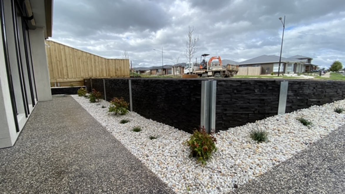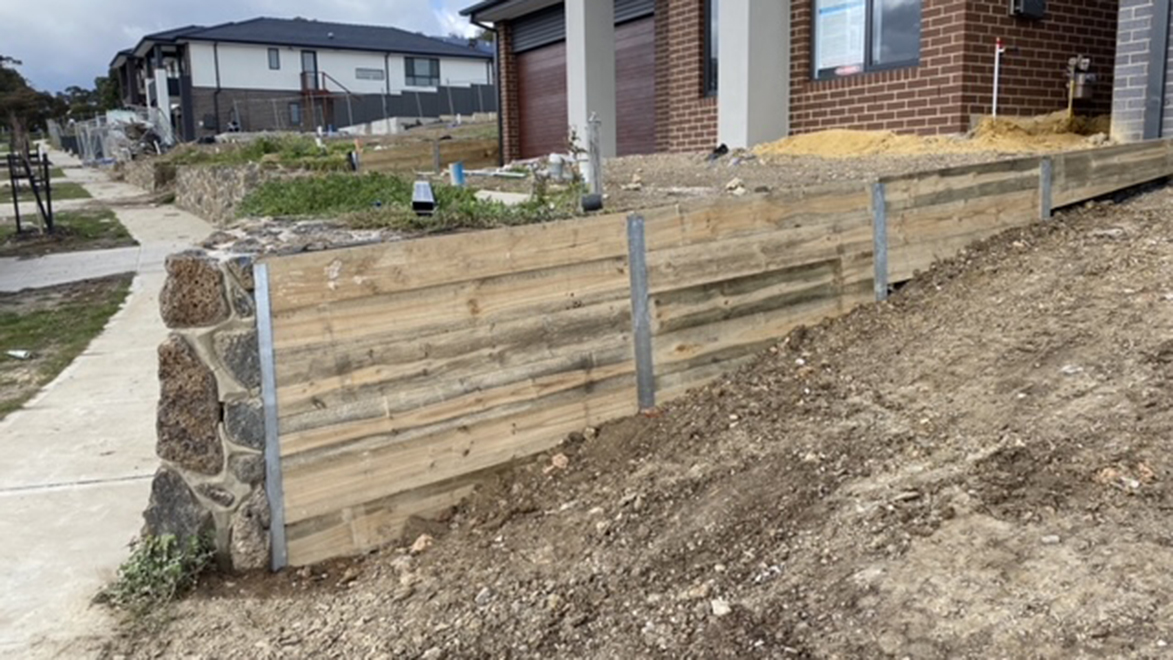 We recommend and work predominantly with concrete sleepers. There are many advantages to using this long lasting and durable material. Concrete sleepers are comparable on price with traditional sleepers and as they are made from concrete, they are a perfect long-term solution, as there is no need for ongoing maintenance. We can source concrete sleepers in a range of colours and patterns that give them the appearance of wood. So, you can have a traditional looking wood retaining wall without having to worry about any maintenance.